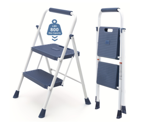 The step stool is made of high-quality steel and can support a weight of 330 pounds. When you use the steps, the metal safety buckle automatically locks in place, and the reinforced cross-support design provides maximum stability during use.